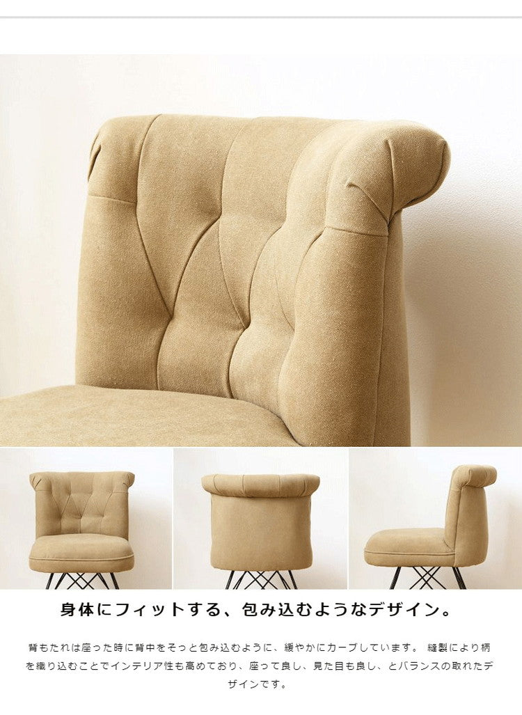 洗いを掛けた風合いのある布地を座面の張地に使用し、