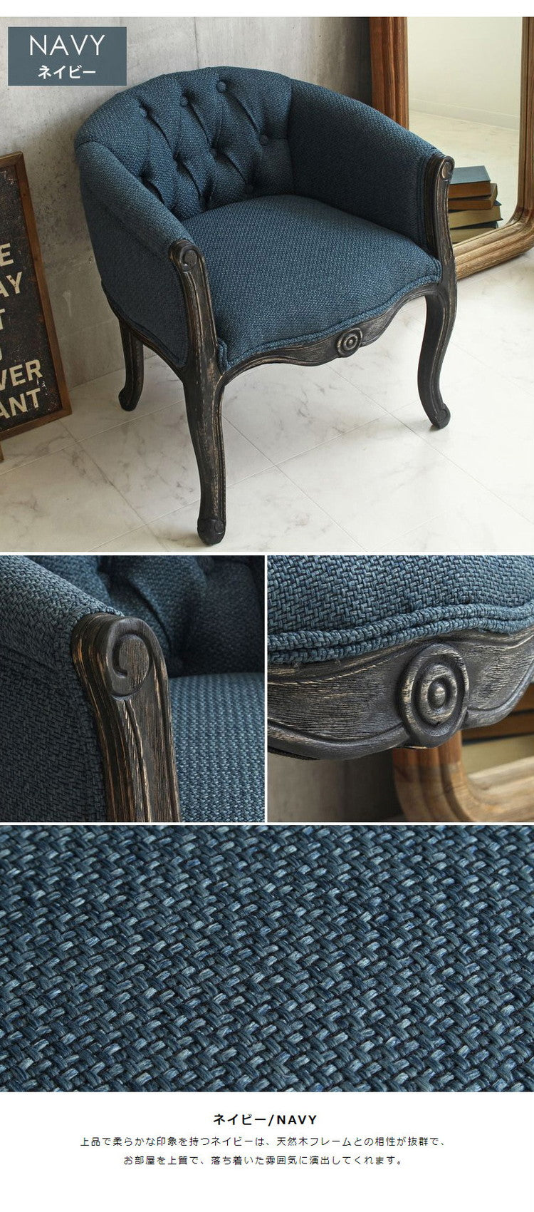 フレームには、味のあるアンティーク仕上げの塗装を施しており、