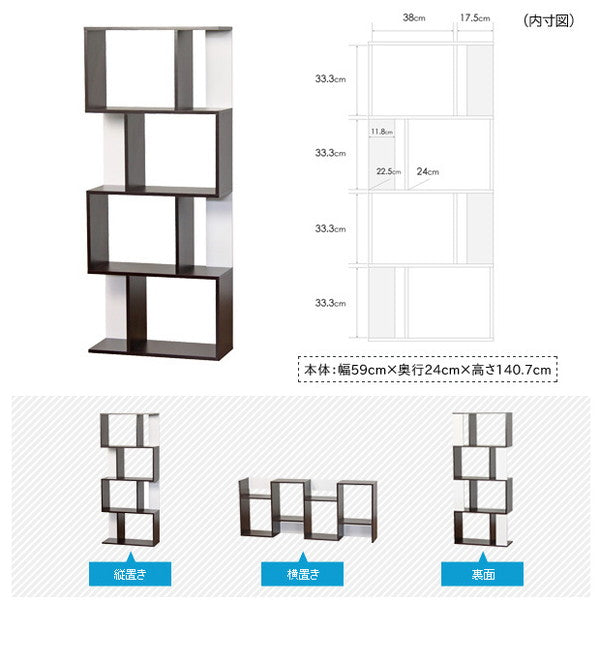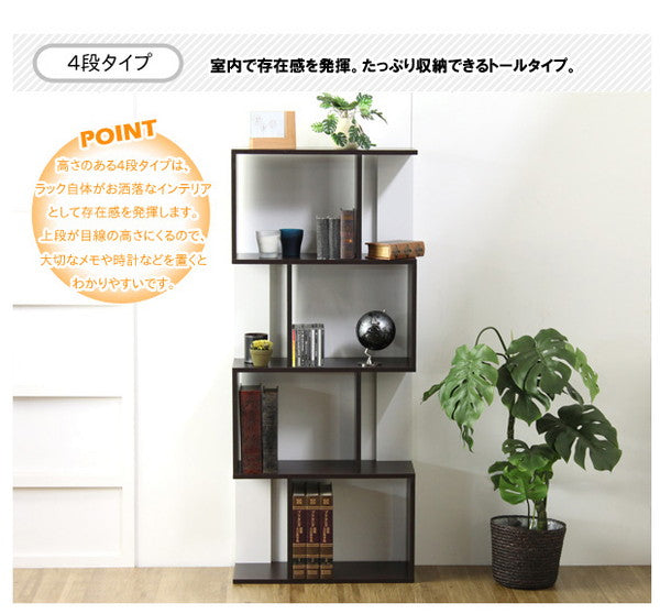 オープンラック 4段 ジーグ zieg iw-1205 ラック シェルフ フリーラック 飾り棚 木製 スリム 幅60 S字ラック ジグザグラック(代引不可)