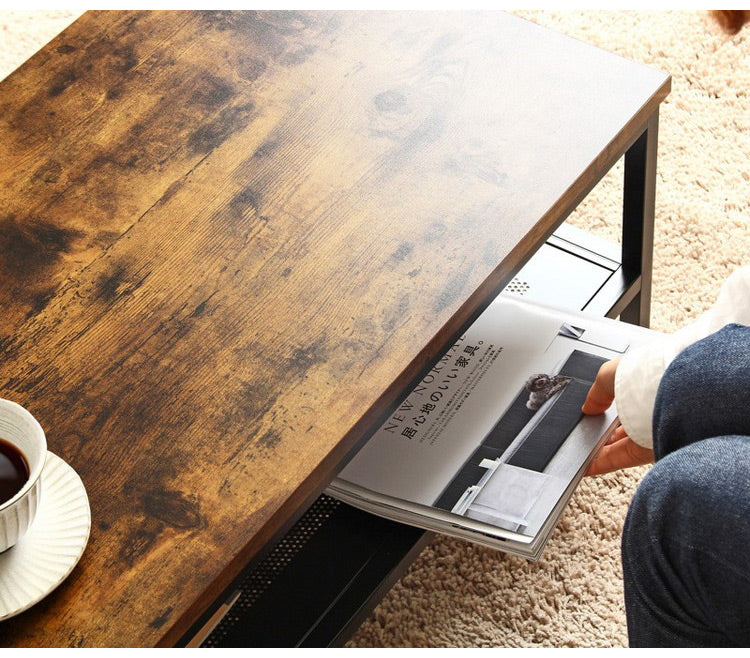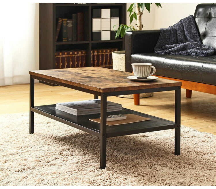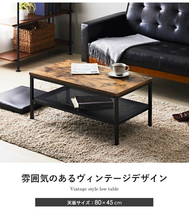 棚付き センターテーブル 幅80cm ヴィンテージスタイル リビングテーブル 棚あり ローテーブル センターテーブル 80×45cm リビングテーブル(代引不可)