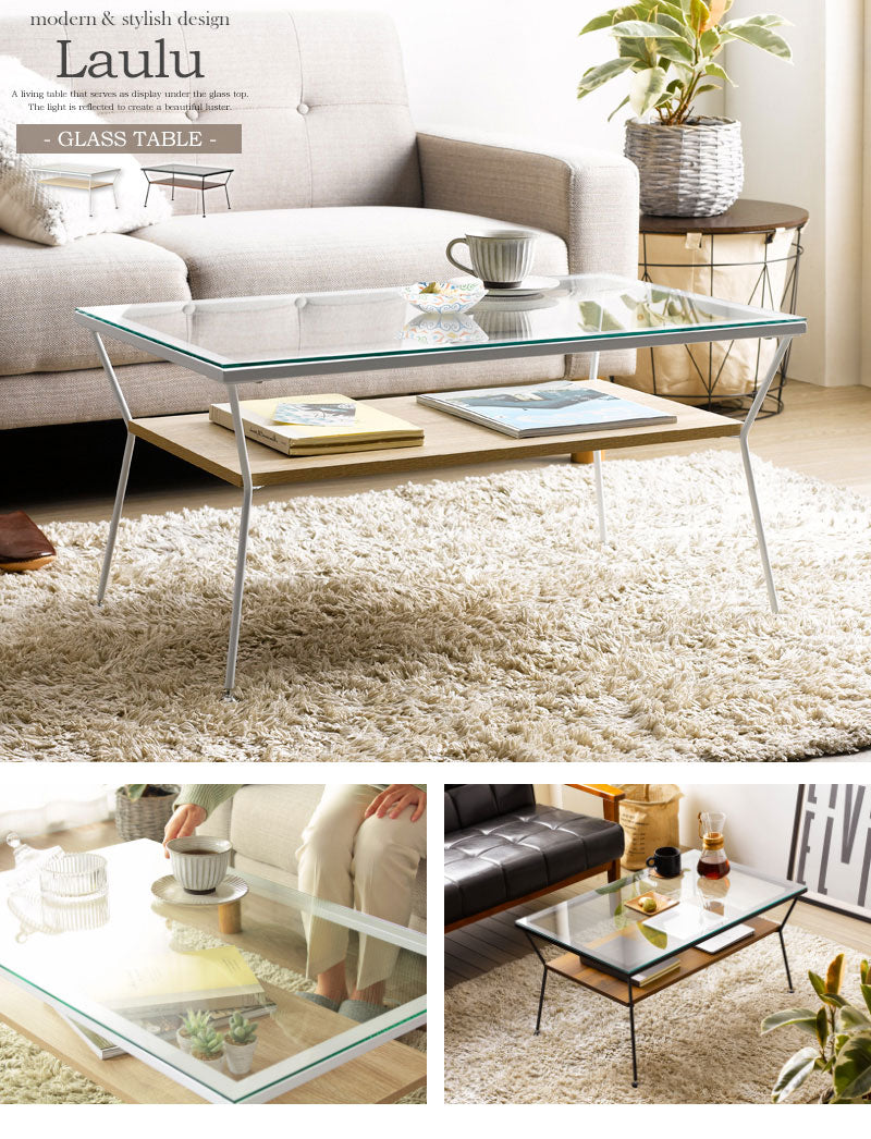 ガラステーブル 幅80cm センターテーブル リビングテーブル ローテーブル テーブル ガラス 収納棚付き ソファ おしゃれ 北欧(代引不可)