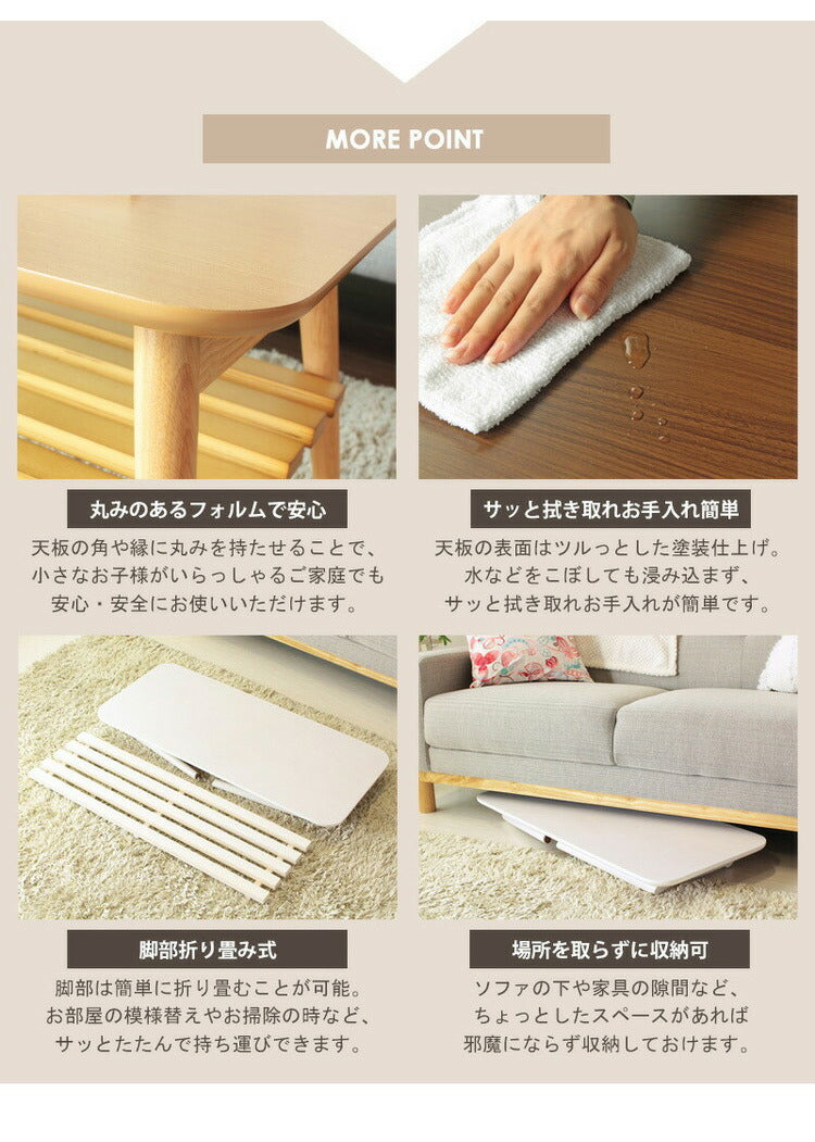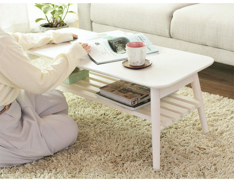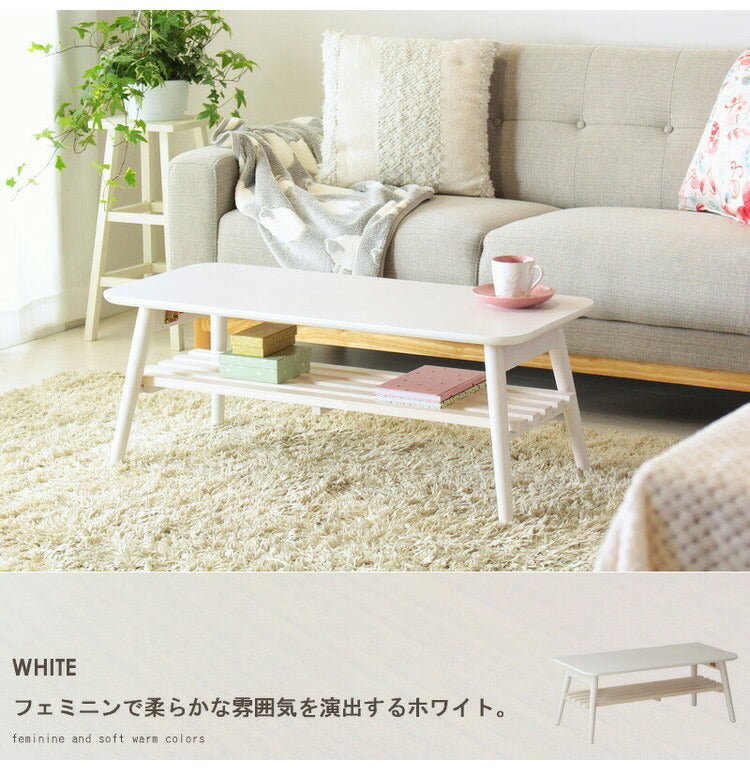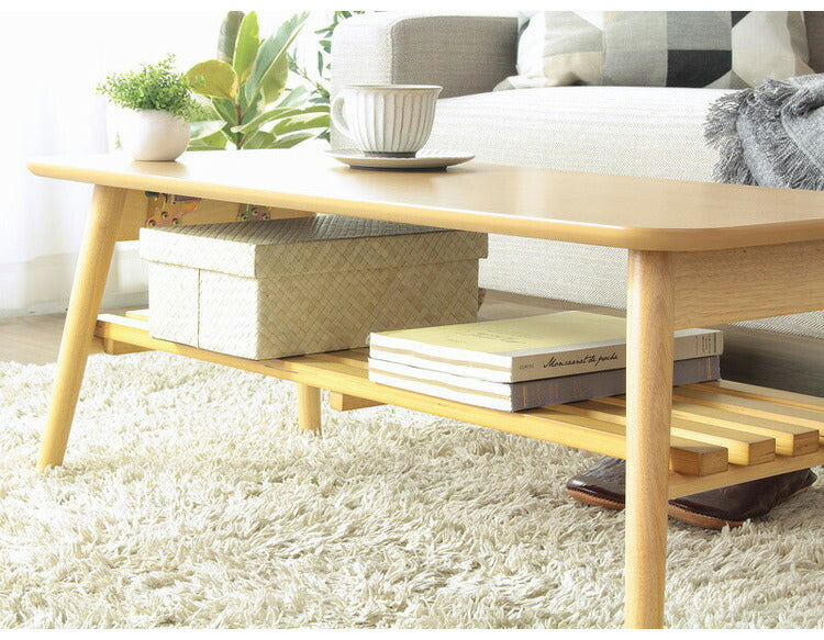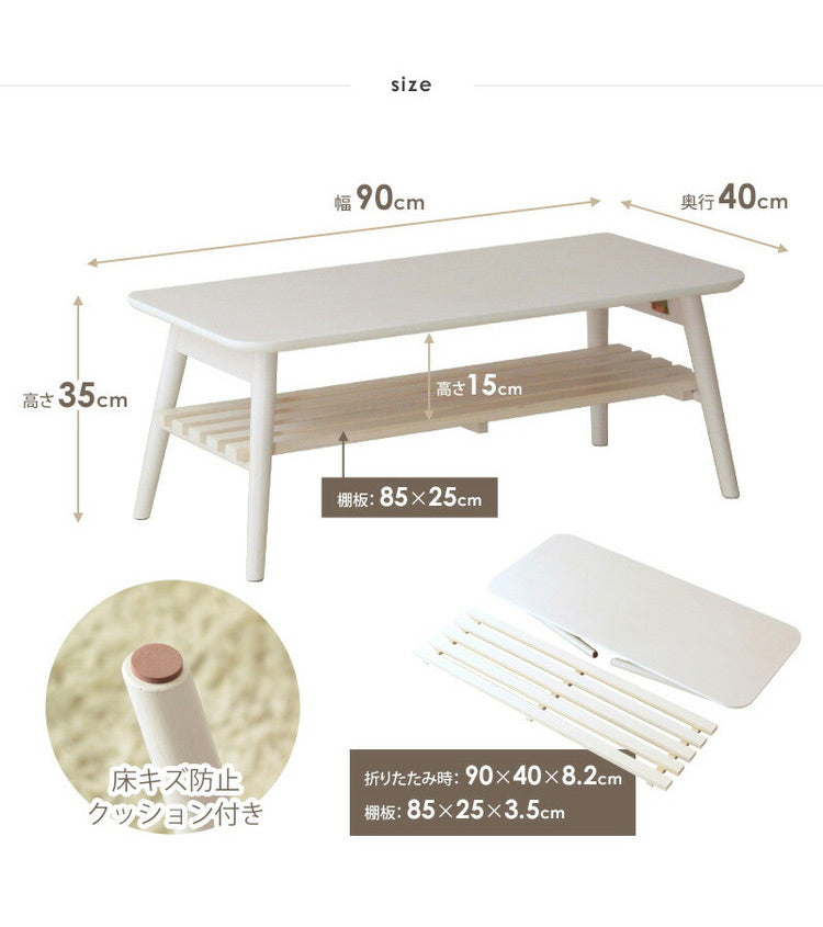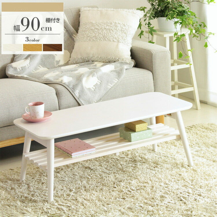 棚付き 折りたたみテーブル 幅90cm chouchou シュシュ ローテーブル センターテーブル 90×40cm フォールディングテーブル リビングテーブル 四角(代引不可)