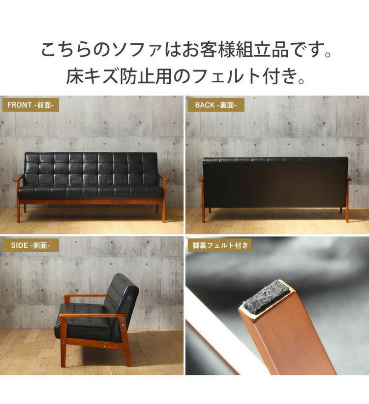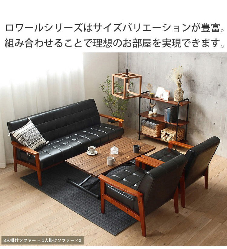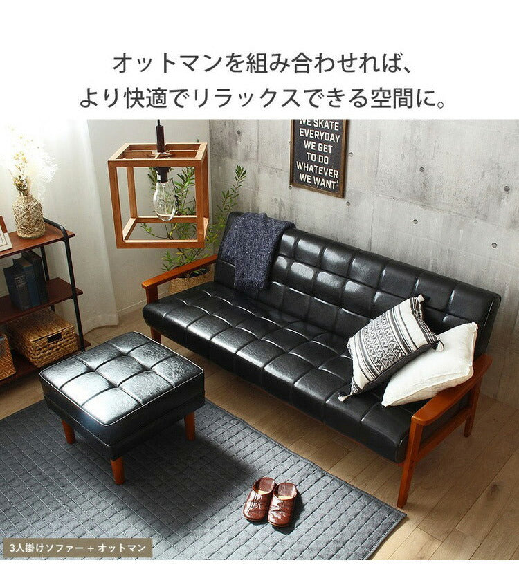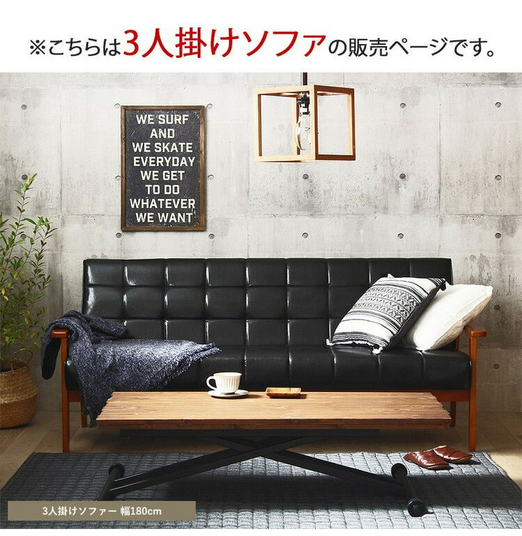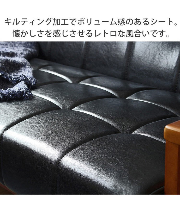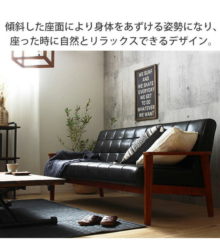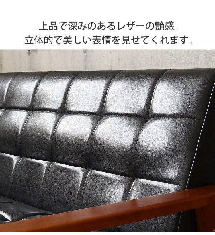 ソファ 3人掛け 幅180cm Loire ロワール レトロモダンデザインソファ 木肘 ブラック レザー ソファー 3人掛け 三人掛け リビングソファー ソファ ヴィンテージ(代引不可)