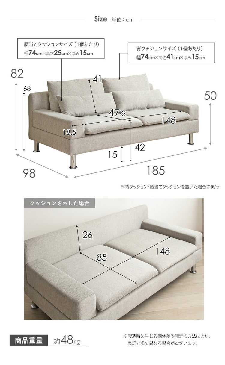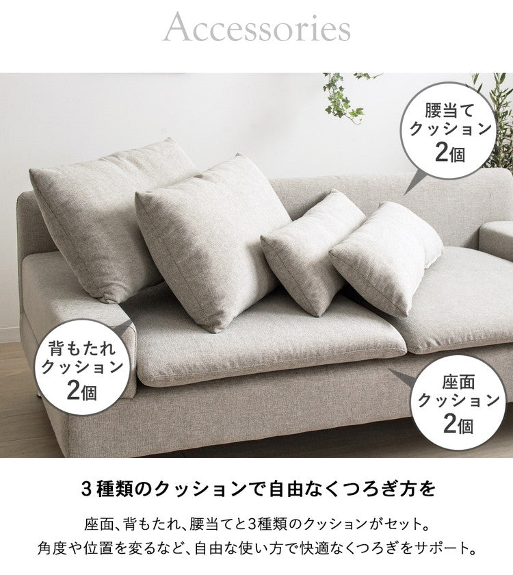 家族みんなが集まってくつろげる大きめサイズで、奥行が深いのでソファベッドの代わりにもなります。