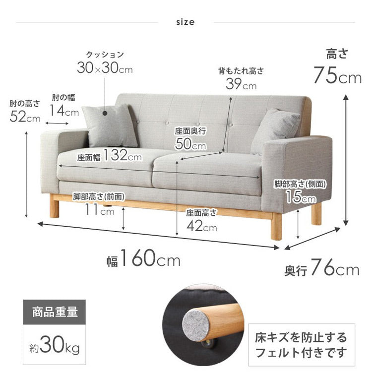 ・2人掛けを少しワイドにした横幅160cmサイズで、大人2人でもゆったり座れるサイズ感です。