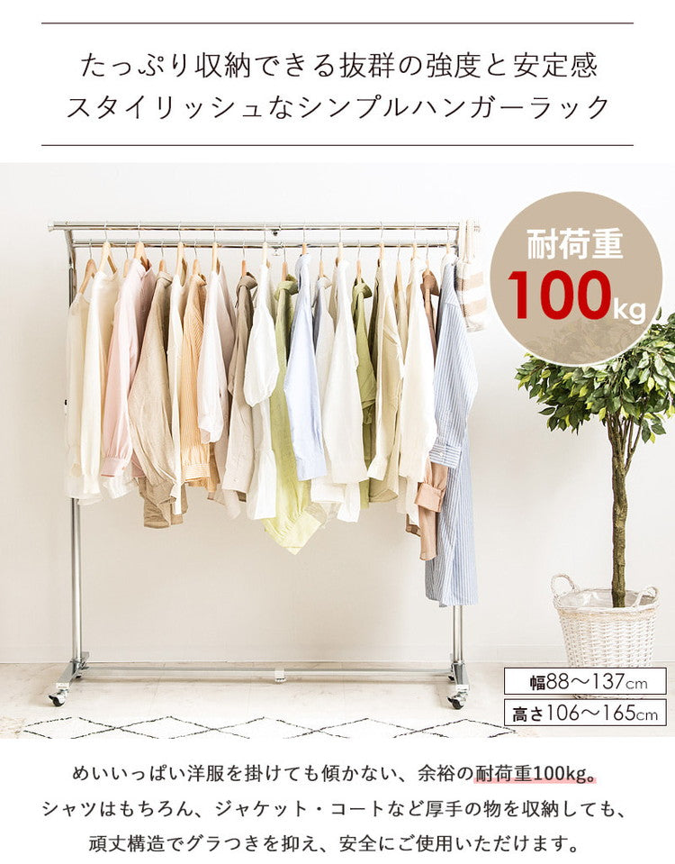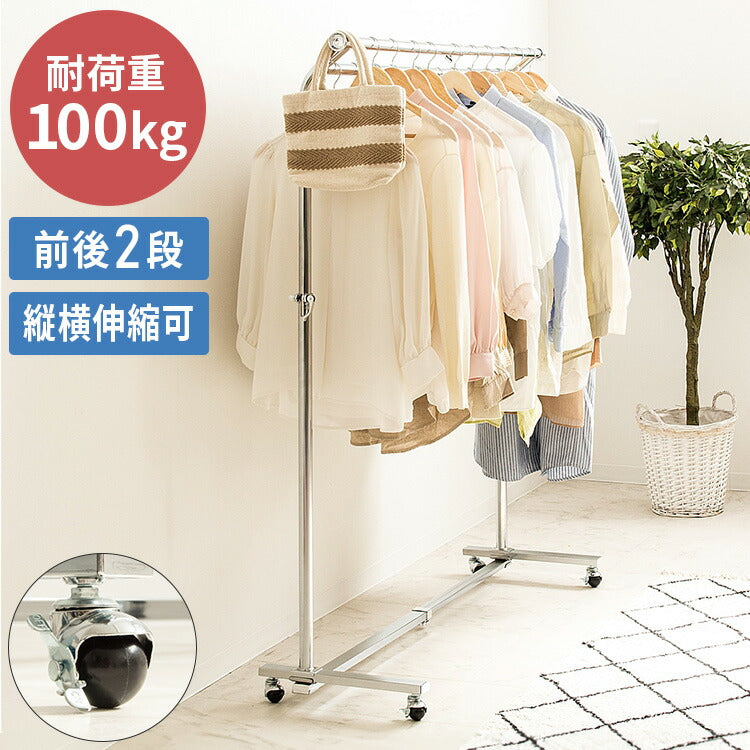 ハンガーラック ダブル 2段 2連 頑丈 耐荷重100kg スリム おしゃれ 省スペース 幅88 幅137 縦横伸縮 キャスター付き シンプル 業務用 壊れない 衣類ハンガー 洋服掛け 衣類収納 コートハンガー 大容量(代引不可)