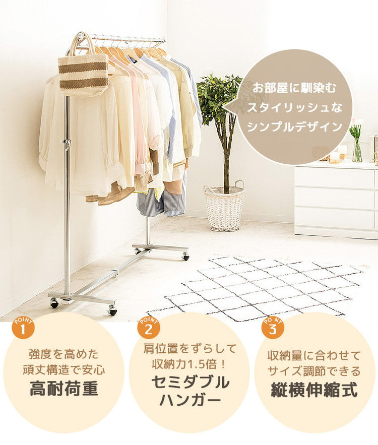 セミダブルハンガー仕様 頑丈ハンガーラック 幅88~137cm