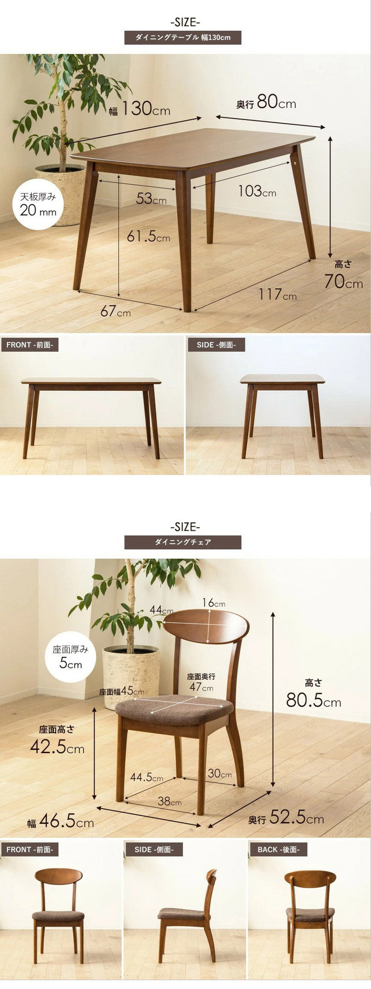 チェア:幅46.5×奥行52.5×高さ80.5cm