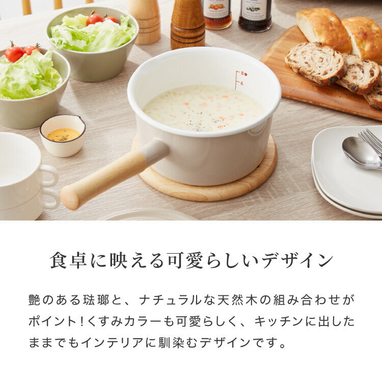 富士ホーロー コットンプラス ミルクパン14cm+ソースパン18cm 2点セット フタ付き ガス火・IH対応 片手鍋 ホーロー鍋 可愛い かわいい 琺瑯 ほうろう ホーロー FUJIHORO