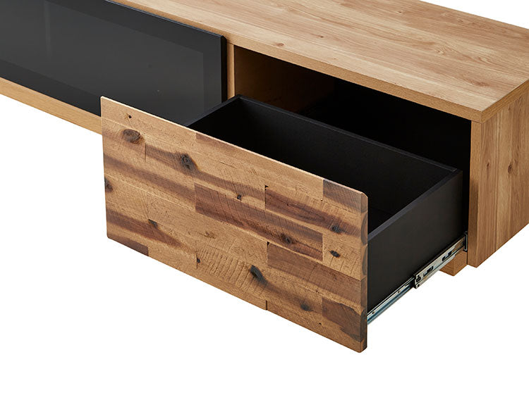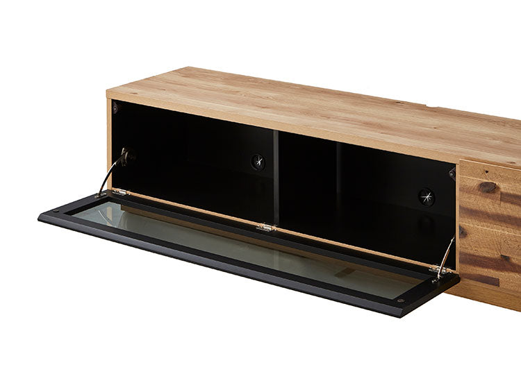 アカシア無垢材の凹凸が特徴的なTV ボード。