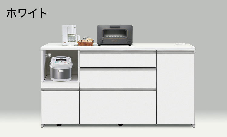 キッチンカウンター 食器棚 幅160cm 高さ85cm 完成品 レンジ台 収納 ハイカウンター キッチン収納 おしゃれ 鏡面 白 ホワイト レンジ台(代引不可)