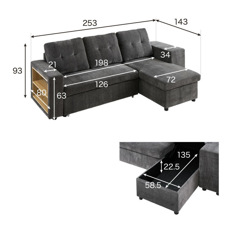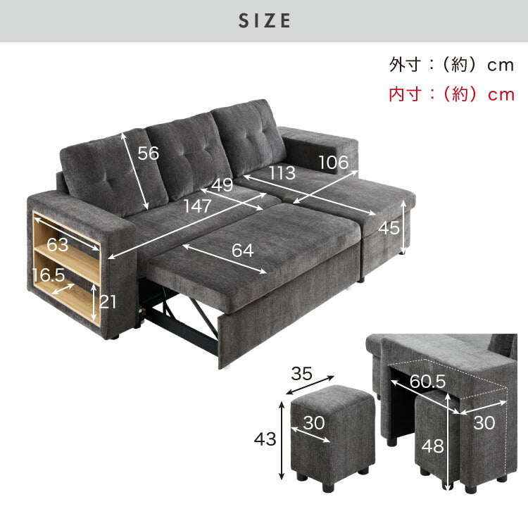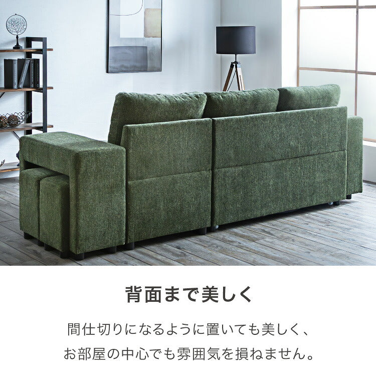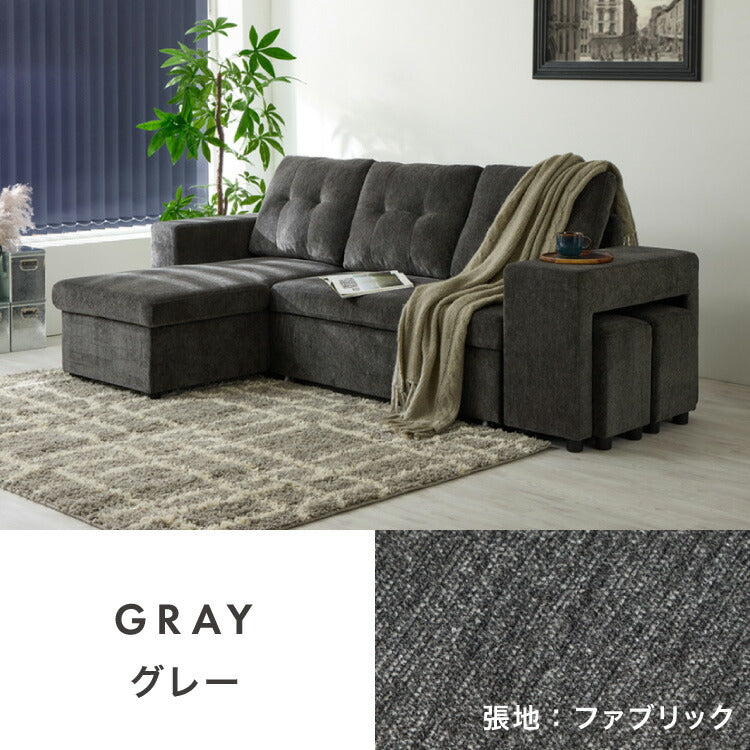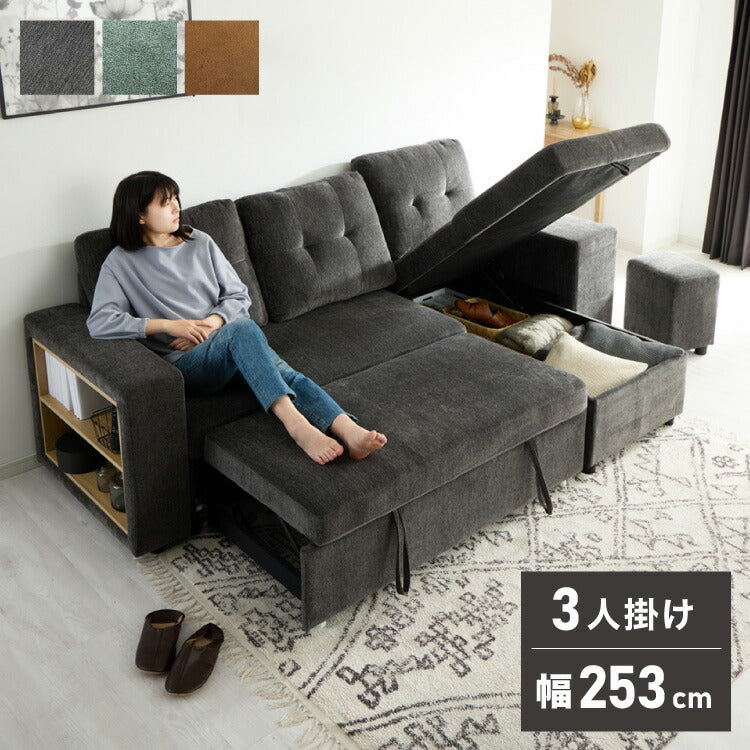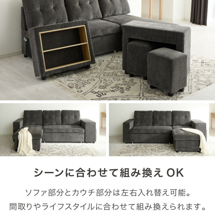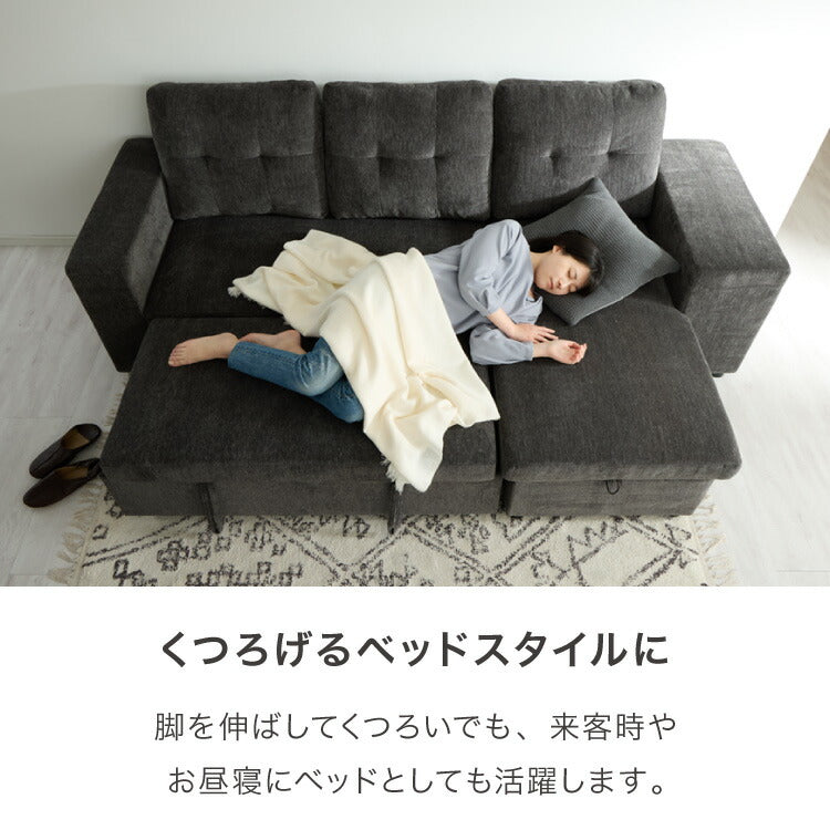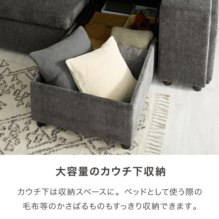 カウチソファ 3人掛け レザーファブリック おしゃれ 収納 跳ね上げ収納 スツール付き オットマン ディスプレイ収納 ソファベッド ソファーベッド ベッド デイベッド カウチソファ(代引不可)