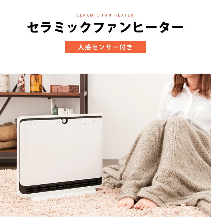 パネルヒーター 人感センサー付き 2段階(1200W/600W) セラミックファンヒーター GPW-H1206-W ホワイト PTCヒーター コンパクト スリム simplus シンプラス