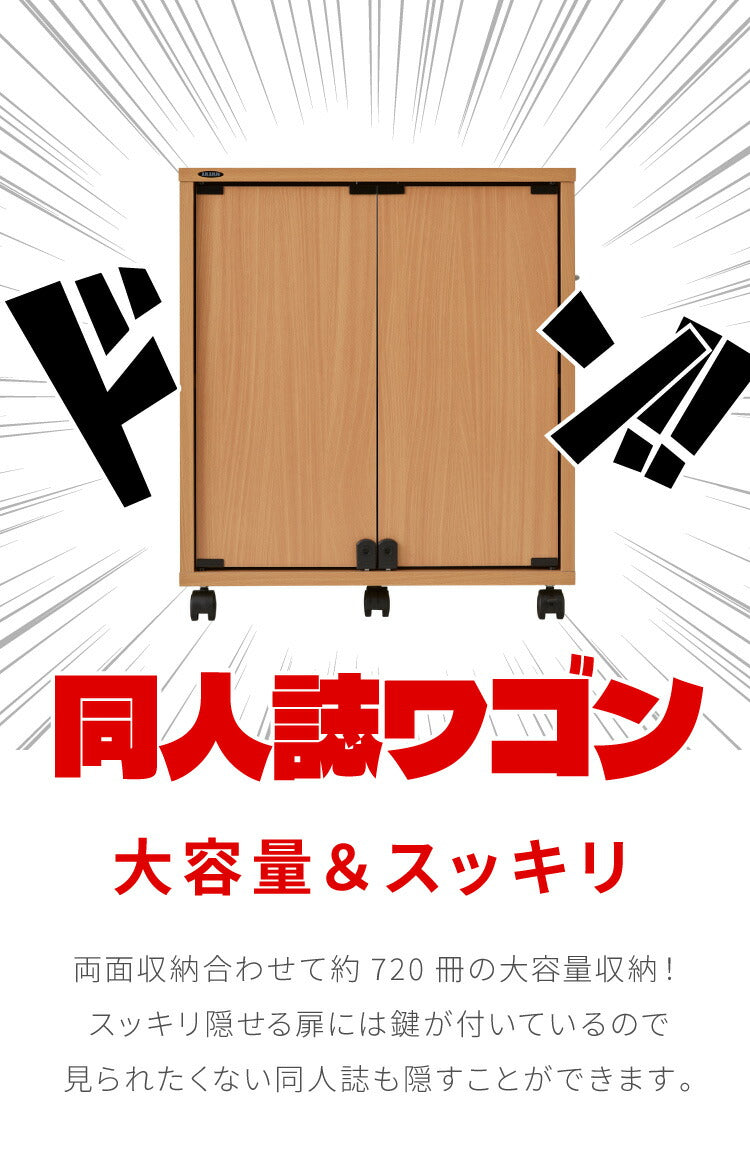 鍵付き キャスター付き 幅58.5 ブックラック ブックワゴン ファイルワゴン 木製 両開き 本棚 ブックラック 押入れ マガジンラック A4 収納(代引不可)