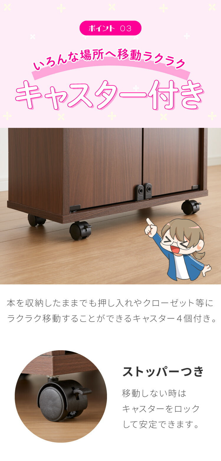 鍵付き 同人誌が入る ブックラック 片開き ブックワゴン 幅58.5 ファイルラック 扉付き キャスター付き コミケ 北欧 マガジンラック 収納(代引不可)