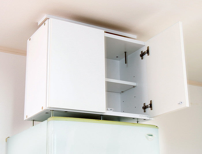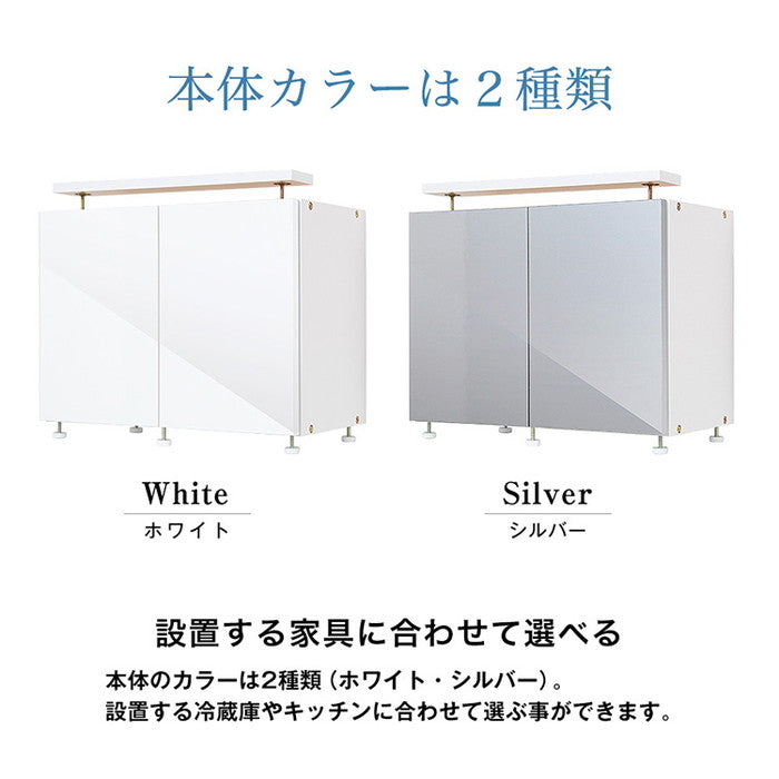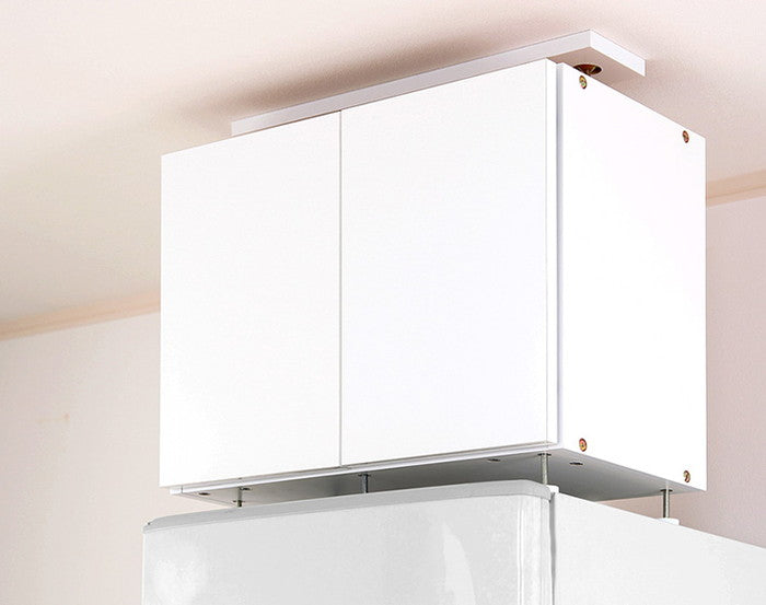 冷蔵庫の転倒防止機能だけではなく、キッチン、冷蔵庫のイメージを損なう事のないEBコーティング鏡面扉のつっぱり転倒防止収納上置です。