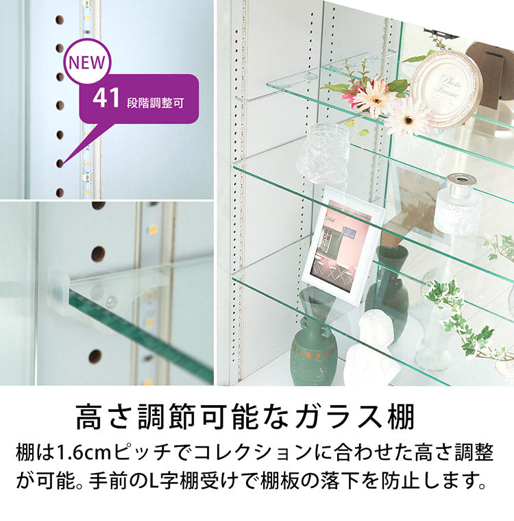 ガラス棚板サイズ:幅78.7cm×奥行23.7cm×厚さ0.5cm、1.6cmピッチ/41段階調整
