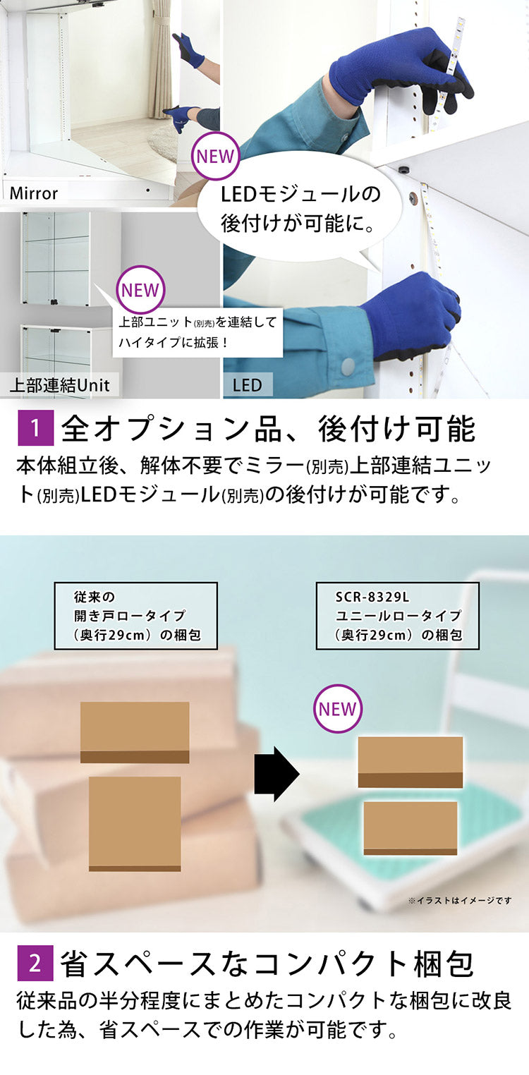 コレクションラック ユニール コレクションケース ディスプレイ ガラスケースユニール 幅83cm奥行29cm 本体 ロータイプ SCR-8329L(代引不可)