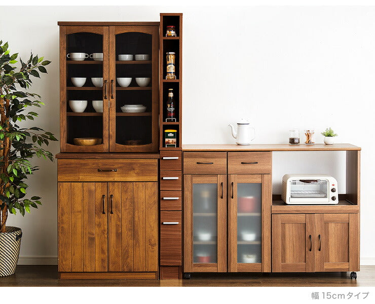 小物の収納に便利な小引出しと、調味料等のストックに便利な大引出しで、使い勝手の良い収納が可能。