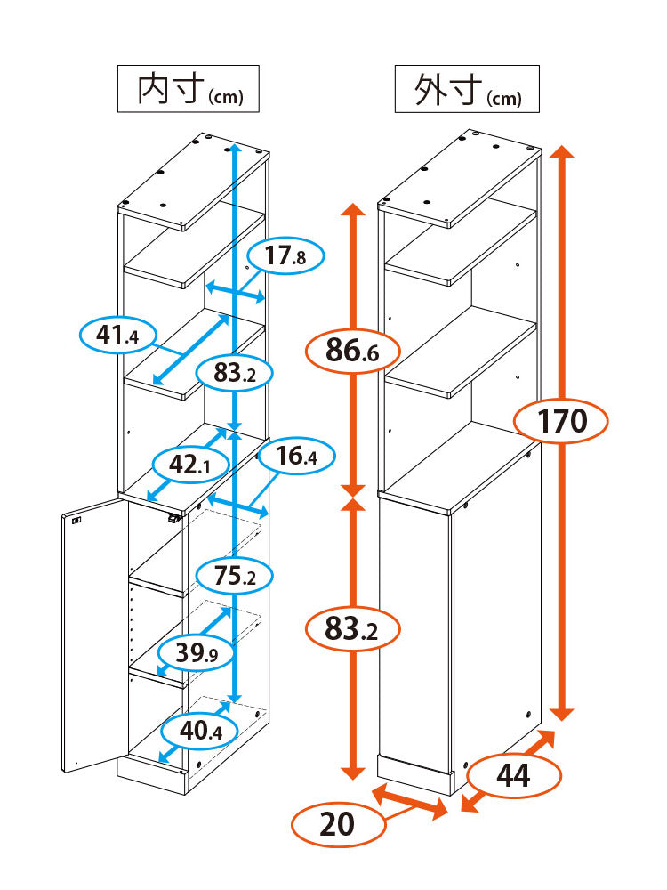 奥行きの深い44cmタイプでキッチンや洗面所等での隙間収納としてお使いいただくのにピッタリなサイズ