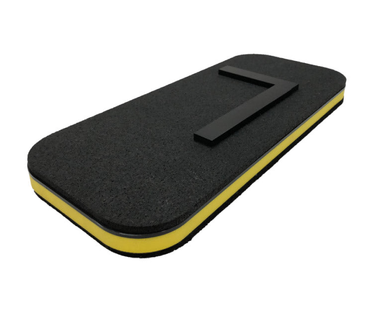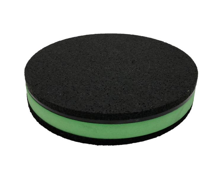 トレッドミル前方と後方のそれぞれ異なる重量、振動、音響周波数に応じて防音・防振効果を発揮するドイツ製”Vibrafoam”SD40とSD110を採用したクッションプレートです。