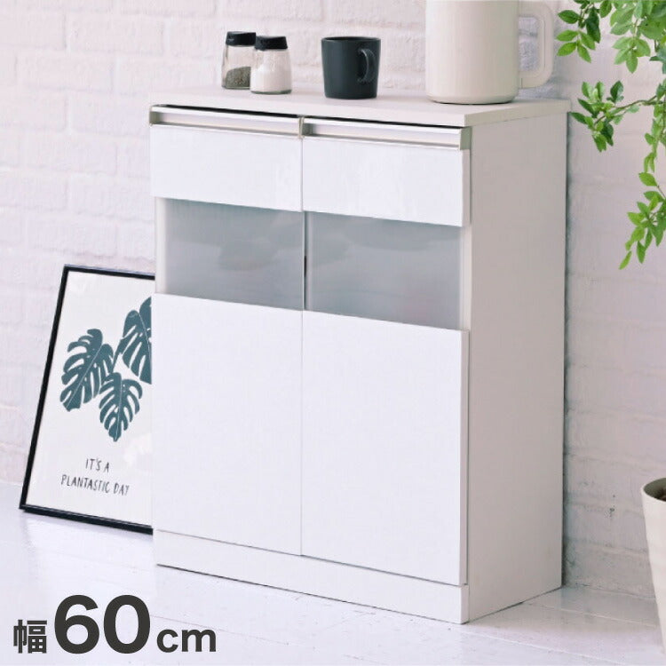 カウンター下収納 サイドボード 幅60 鏡面仕上げ 白 ホワイト 扉収納 キャビネット 食器棚 すりガラス スリム コンパクト リビング収納 カウンター下 収納 北欧 おしゃれ(代引不可)