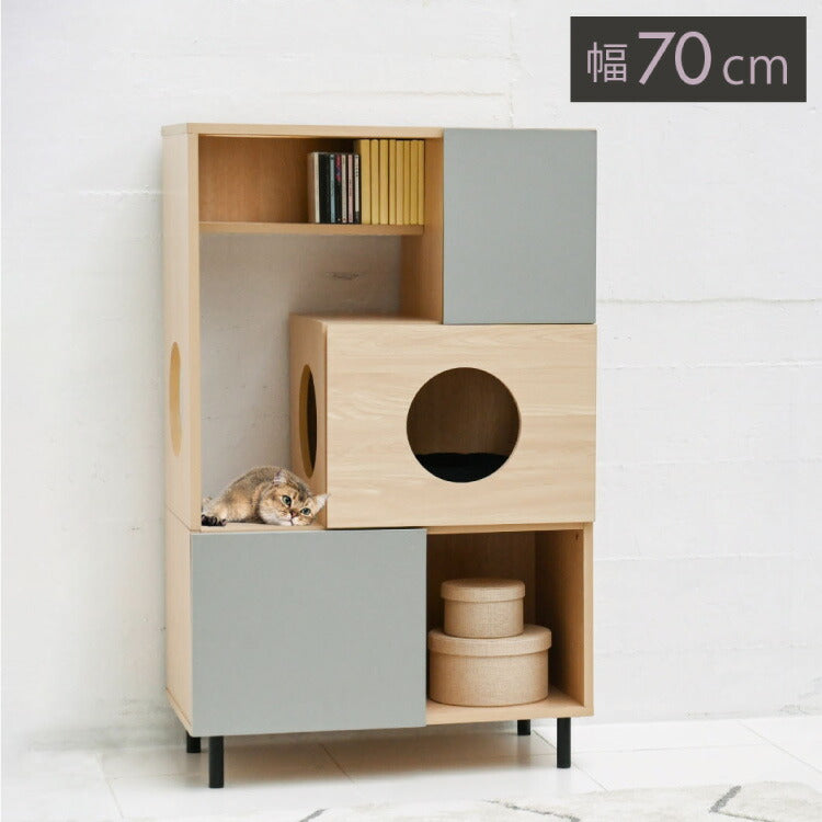猫と暮らす キャビネット 幅70 キャットウォーク キャットタワー 猫 トイレ収納 棚 ペット用品 収納 ねこ家具 猫が遊べる家具 猫家具収納 収納ラック(代引不可)
