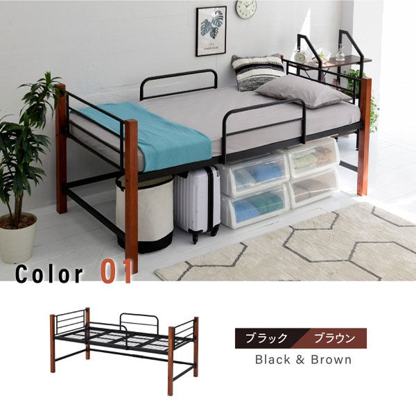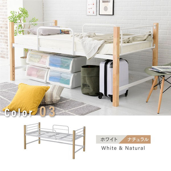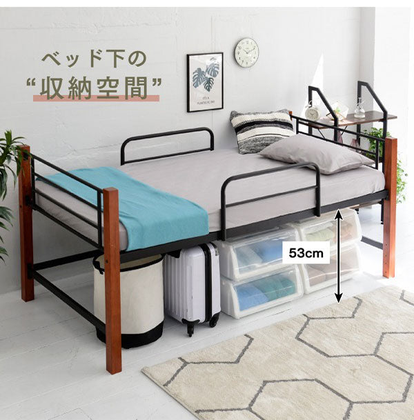 パイプベッド シングルベッド 天然木脚 ミドルタイプ 高さ96cm 頑丈 ベッドガード 手すり ハイタイプ ベッドフレーム スチールベッド ベッド下収納 北欧 おしゃれ(代引不可)