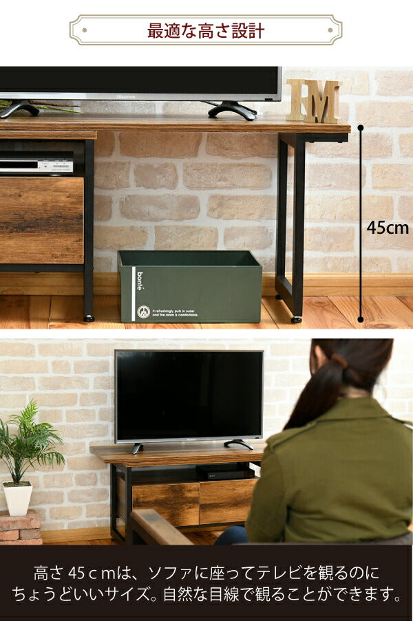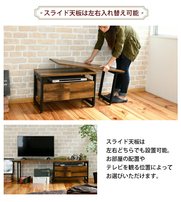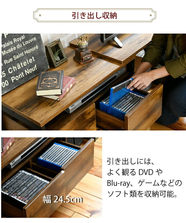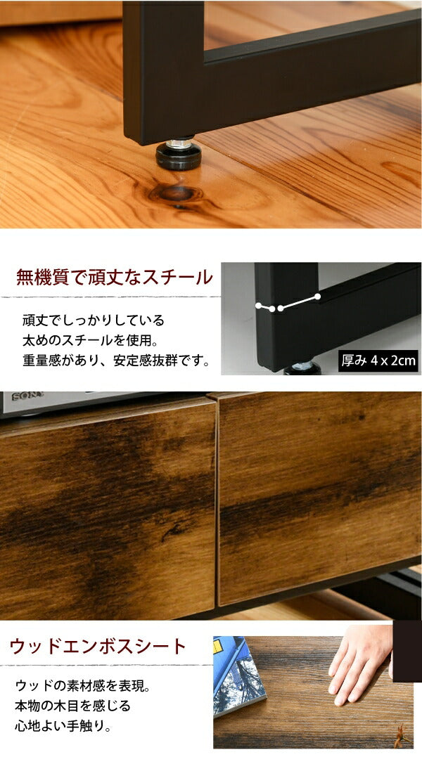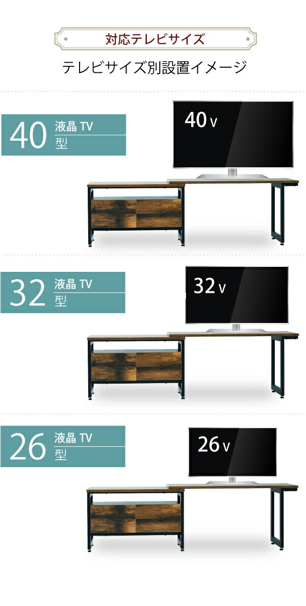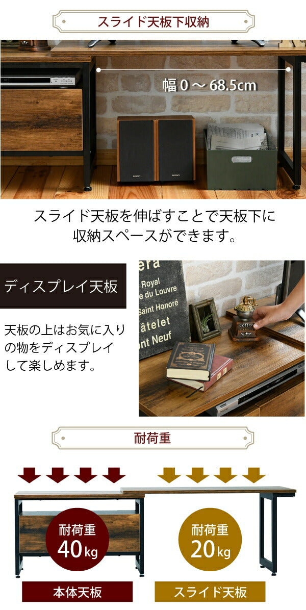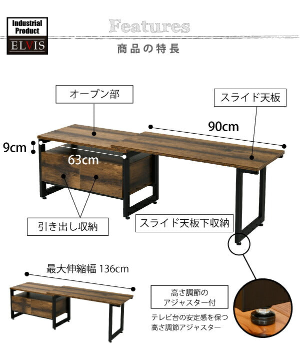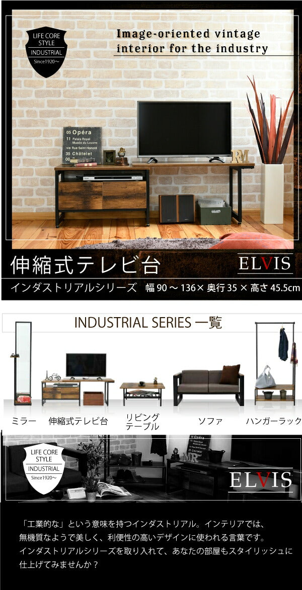 インダストリアル ローボード テレビ台 伸縮 幅90 - 136 奥行35 高さ46 引き出し 付き 収納 左右入れ替え可能32型 40インチ(代引不可)