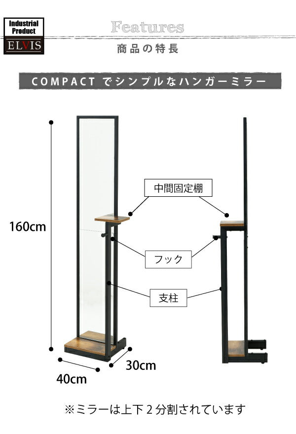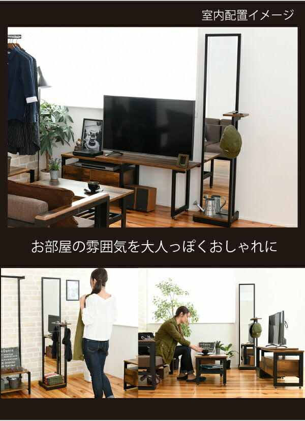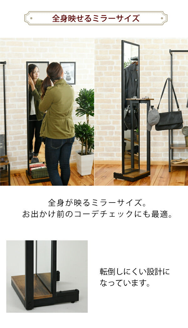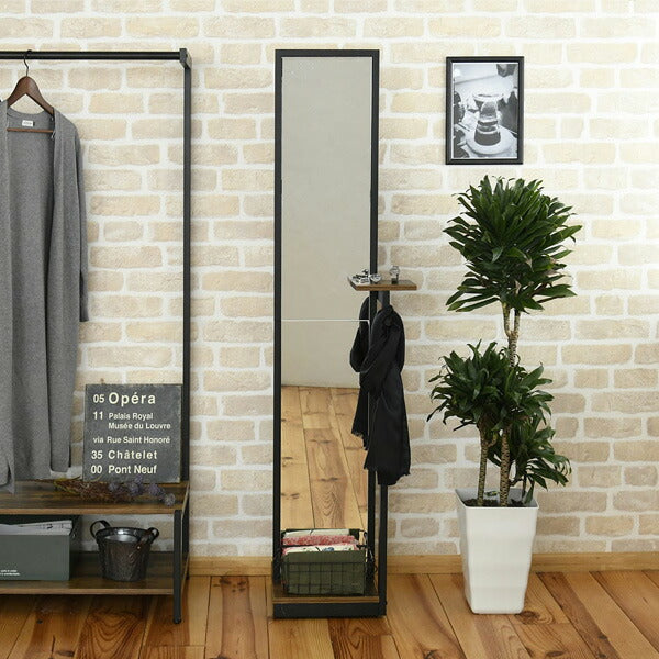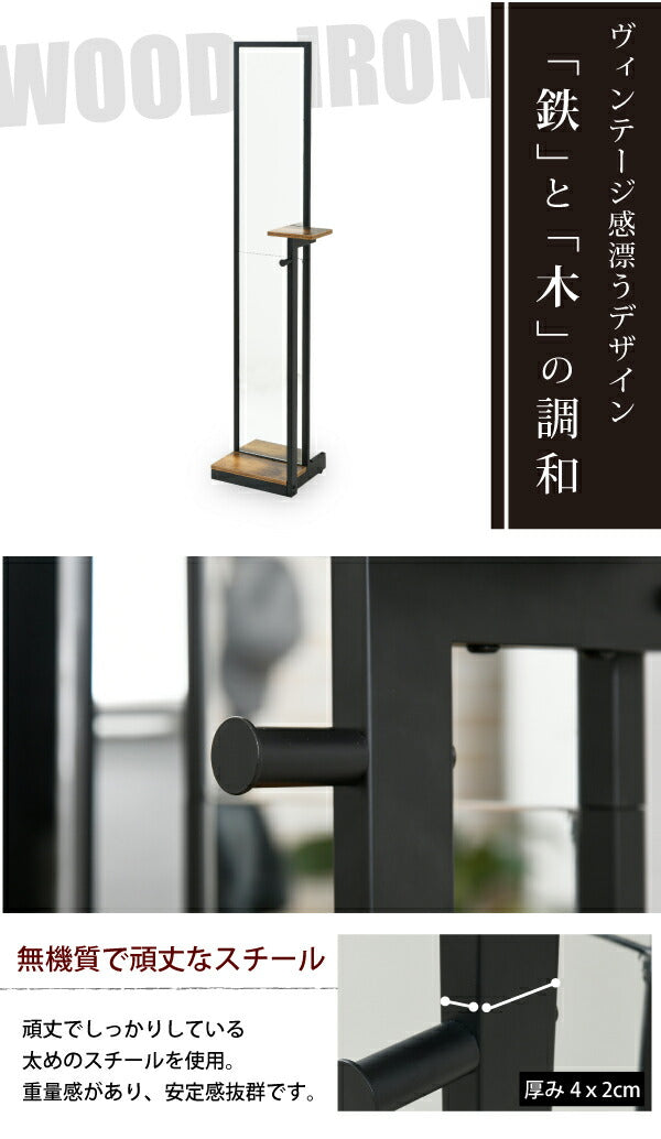 インダストリアル スタンドミラー 幅40 奥行30 高さ160 小物置き 付き 全身鏡 姿見 西海岸 アンティーク ヴィンテージ(代引不可)