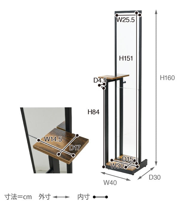 [内寸]:(ミラー)幅25.5×高さ151cm
