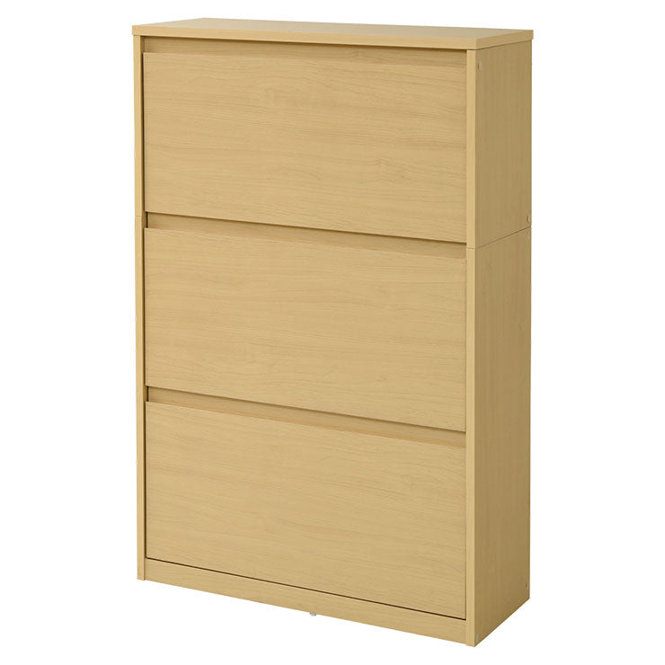下駄箱 ワイド 3段 フラップ 扉 付き 幅79 奥行29 高さ123 大容量 最大18足 薄型 靴箱 収納 玄関収納 ナチュラル(代引不可)