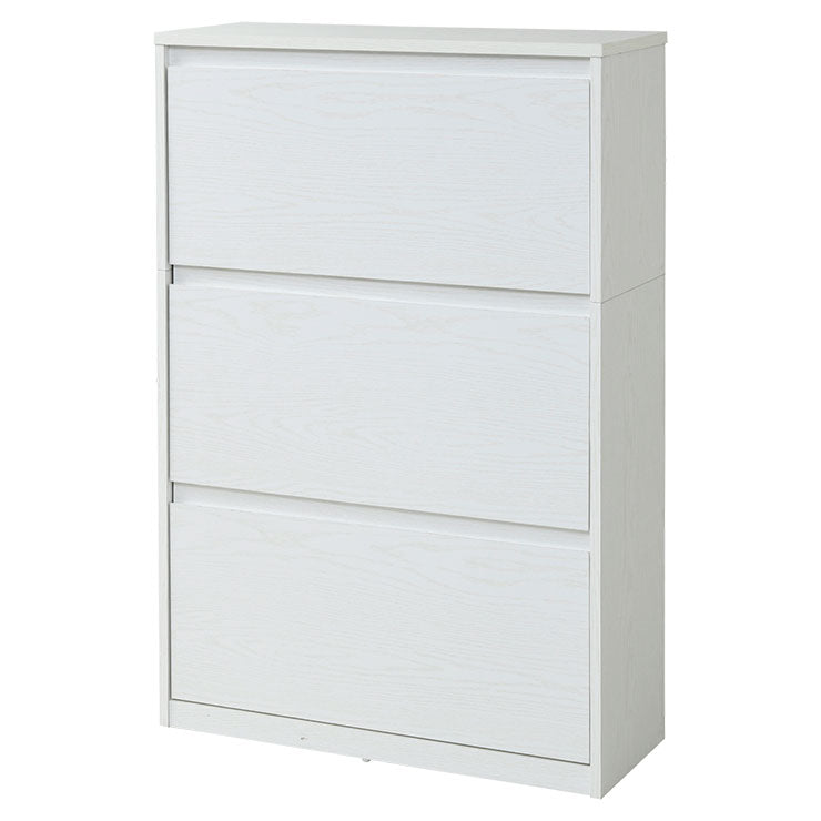 下駄箱 ワイド 3段 フラップ 扉 付き 幅79 奥行29 高さ123 大容量 最大18足 薄型 靴箱 収納 玄関収納 ホワイト(代引不可)