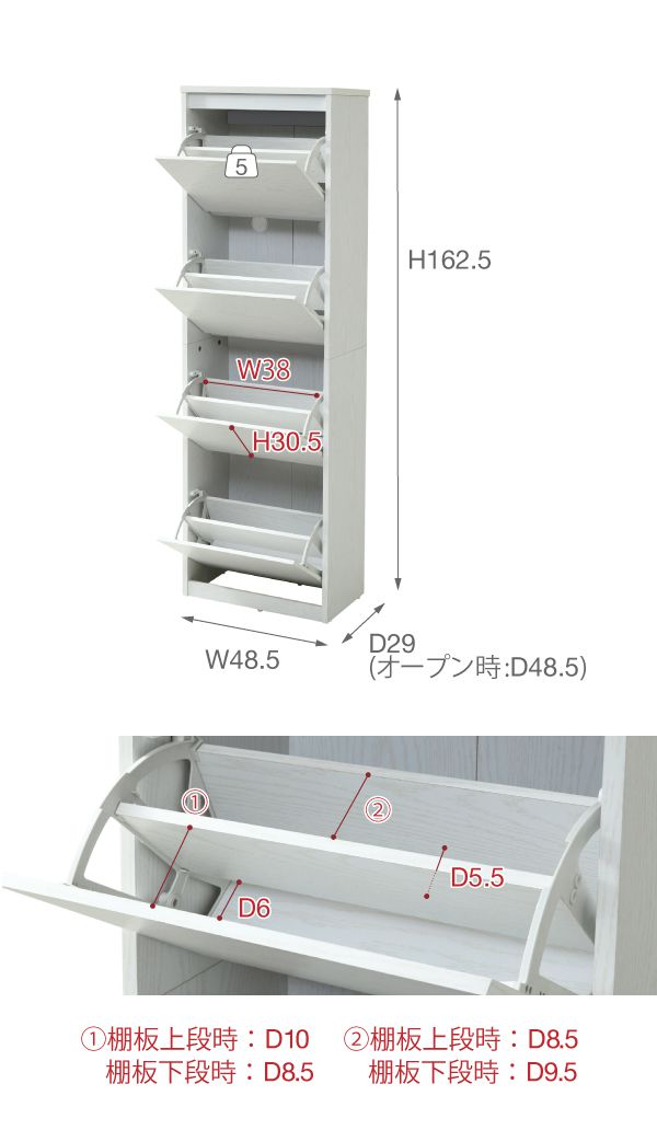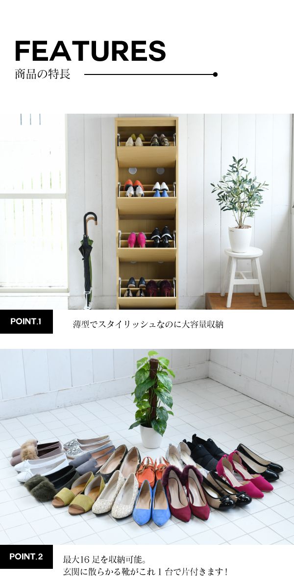 下駄箱 スリム 4段 フラップ 扉 付き 幅49 奥行29 高さ161 大容量 最大16足 薄型 靴箱 ハイタイプ 収納 玄関収納 ホワイト(代引不可)