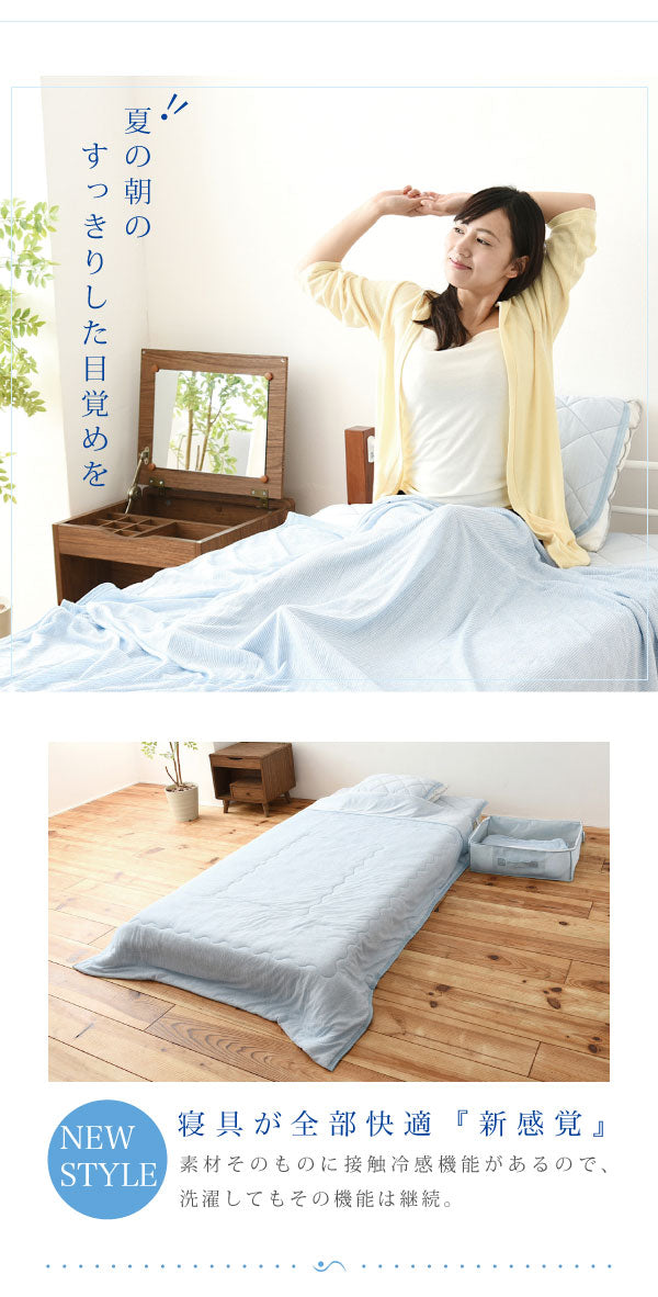 春~夏~秋まで使いたい、シングルサイズの接触冷感寝具6点セット。