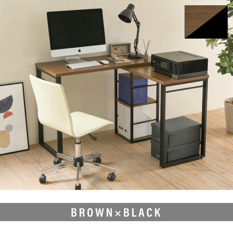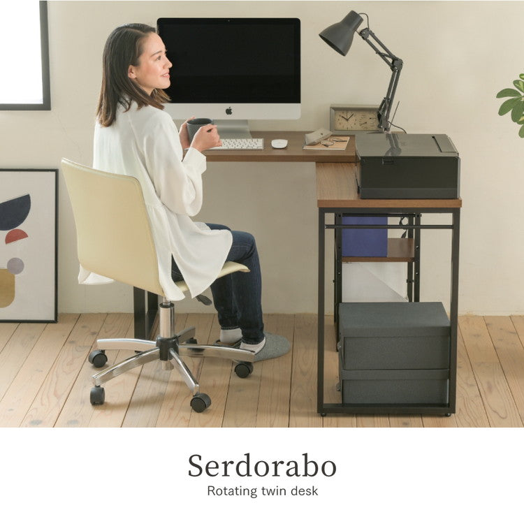 回転式 3WAYワークデスク L字・I字・コンパクト パソコンデスク ツインデスク 棚付きデスク ユニットデスク スチール脚 回転 省スペース 作業机 在宅勤務 テレワーク 北欧 おしゃれ(代引不可)