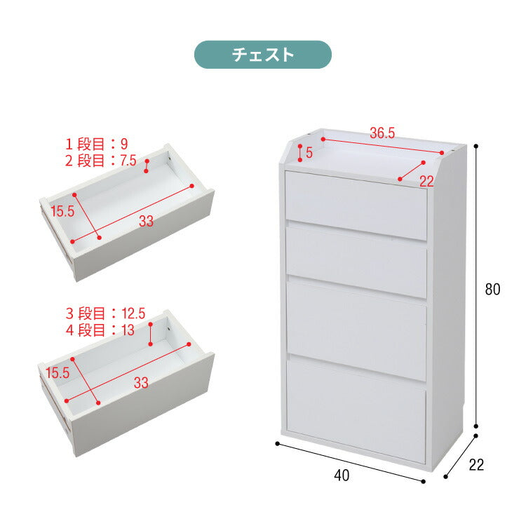 (引出し)幅33.0×奥行15.5×高さ1段目:9 2段目:7.5 3段目:12.54段目:13.0cm