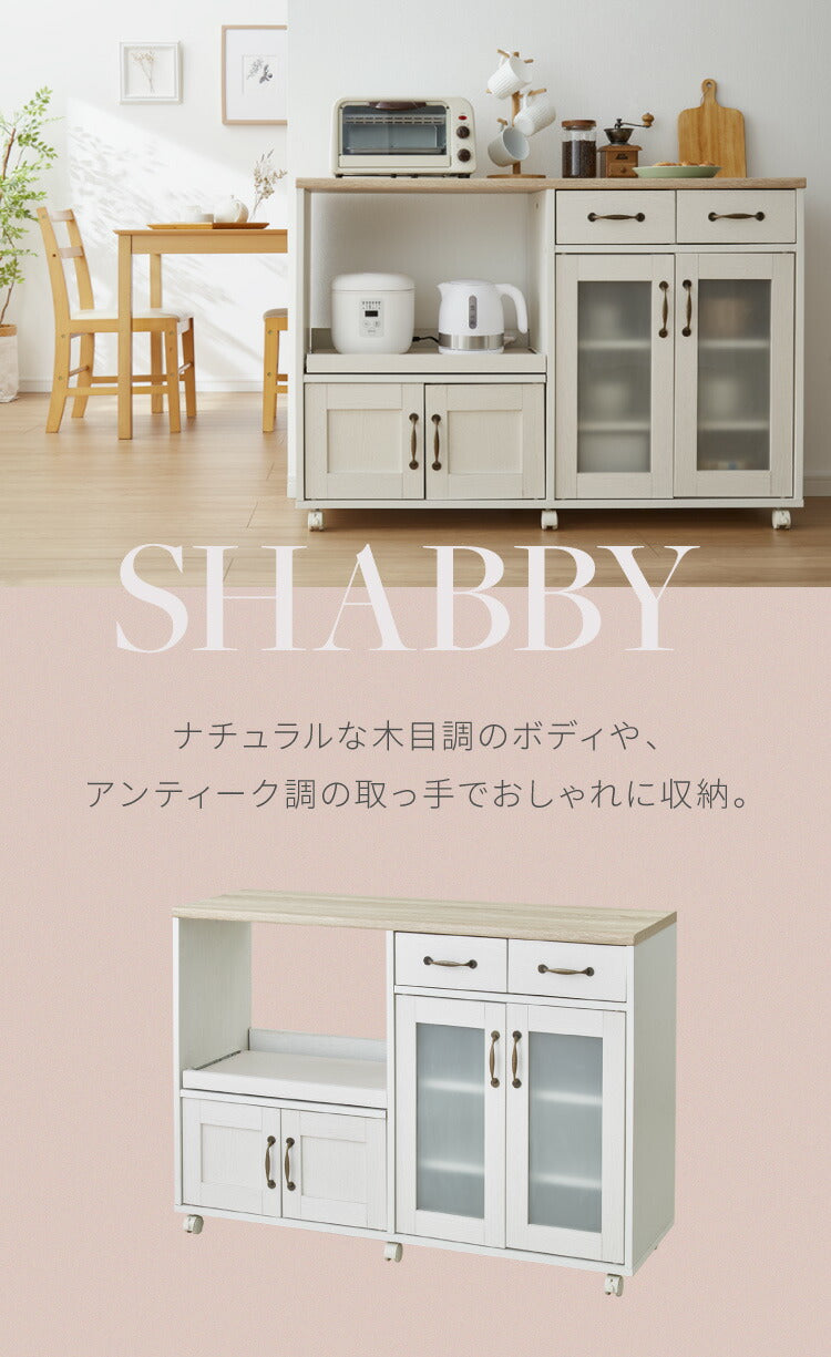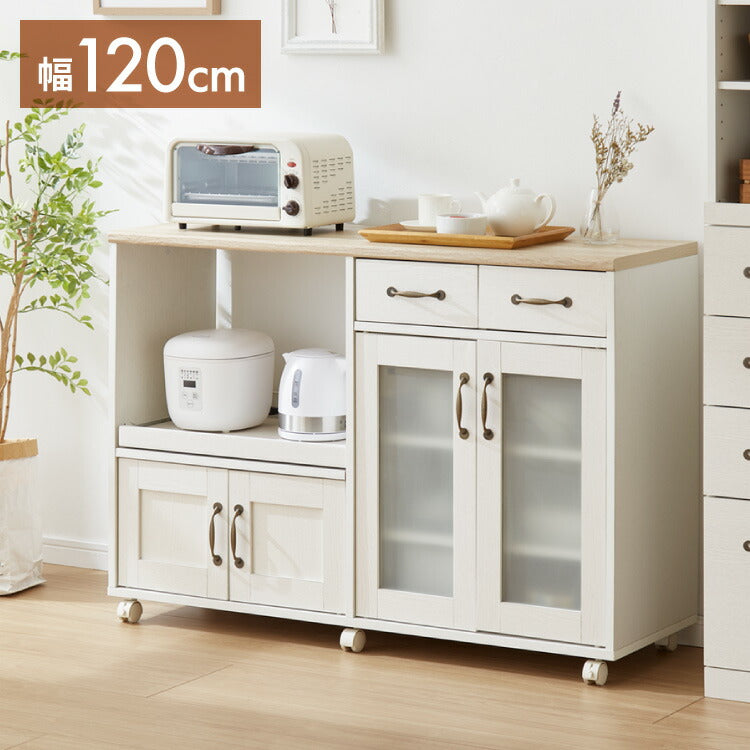 キッチンカウンター キャスター付き 幅118cm 食器棚 ロータイプ キッチンボード レンジ台 レンジボード レンジラック 大型レンジ対応 キッチンラック カップボード キッチン 収納 引き出し