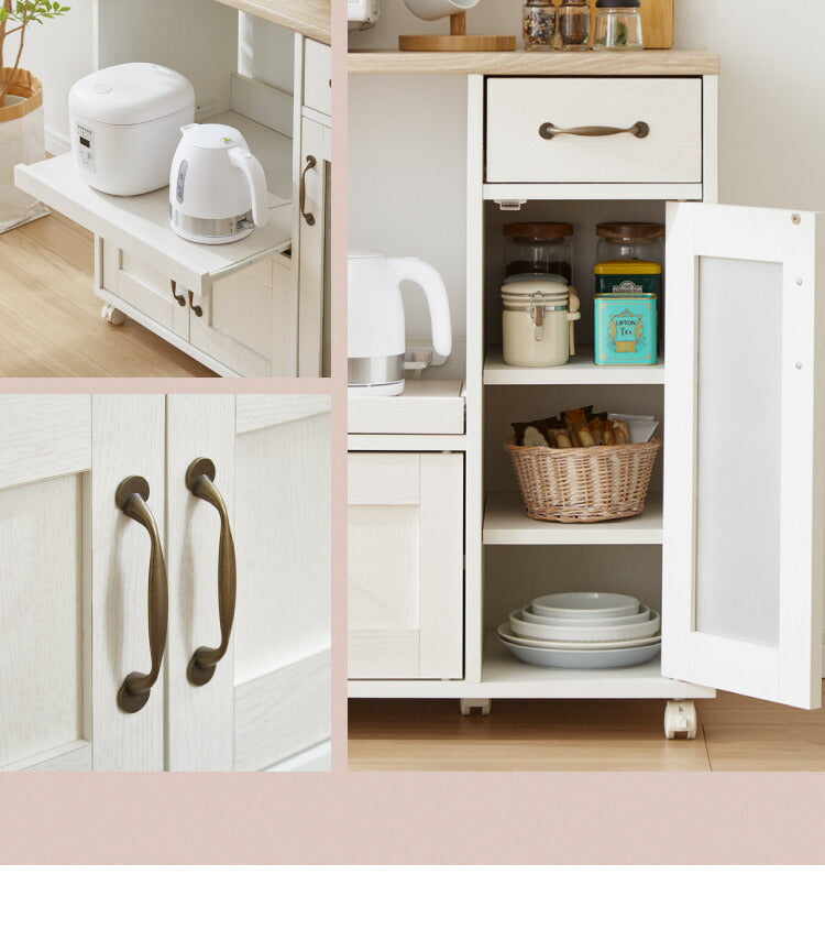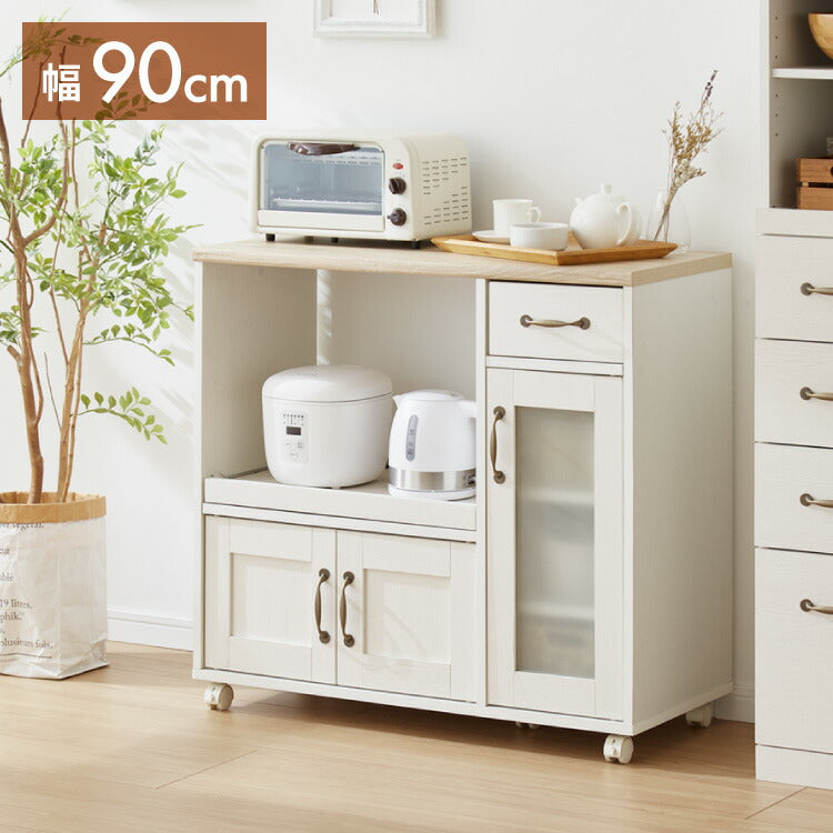 キッチンカウンター キャスター付き 幅88cm 食器棚 ロータイプ キッチンボード レンジ台 レンジボード レンジラック 大型レンジ対応 キッチンラック カップボード キッチン 収納 引き出し