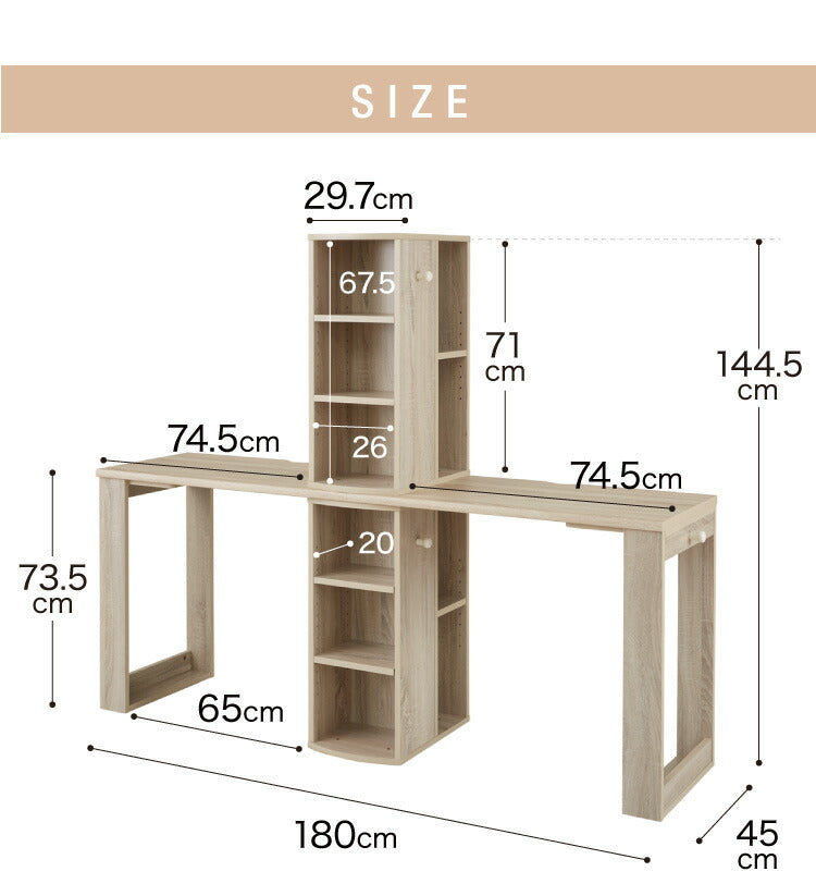 大人になっても使える 学習デスク 学習机 ツインデスク 幅180cm ラック付き 単品使用可能 勉強机 学習デスク 学習机 キッズデスク 収納付き 子供家具 本棚 子供 子ども 子供部屋