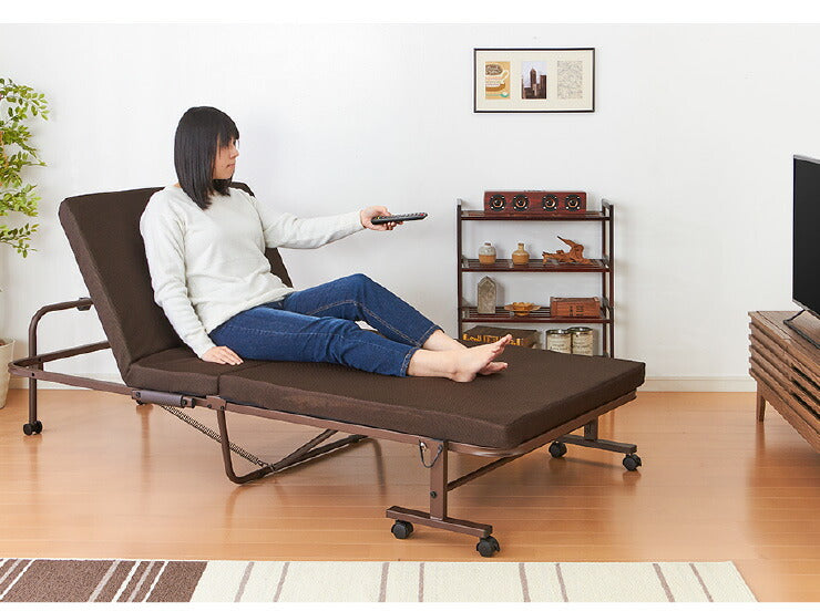 折りたたみベッド シングル キャスター付き マットレス キャスター 手すり 移動 PVCガード(代引不可)