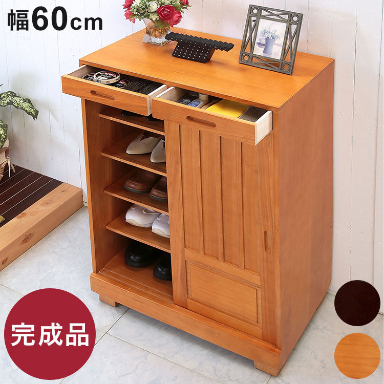 和風引き戸シューズボックス 幅60cm スリム 引き出し収納 靴箱 靴 収納 玄関収納 げた箱ロータイプ 玄関 靴入れ コンパクト 木製 省スペース チェスト シューズケース(代引不可)