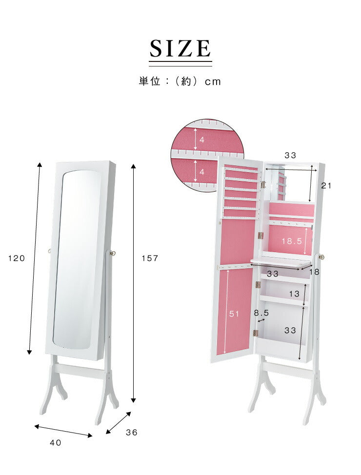 ジュエリー収納付きスタンドドレッサーミラー