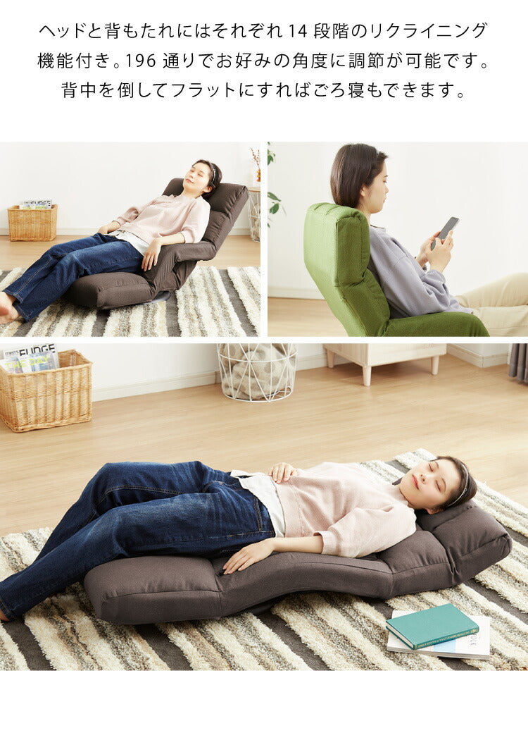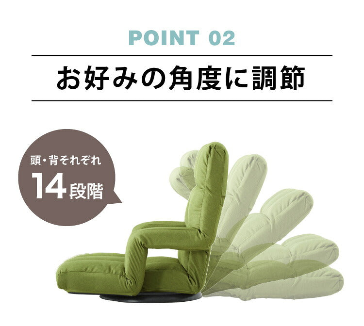 ・ヘッドと背もたれにはそれぞれ14段階リクライニングがあり、お好きな角度に調整できます。