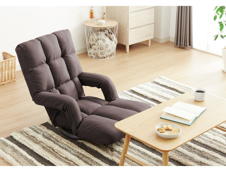 座面が広い 肘付きゆったり回転座椅子 14段ギア搭載 肘掛け付き 360度回転 座椅子 座いす リクライニング ハイバック チェア(代引不可)