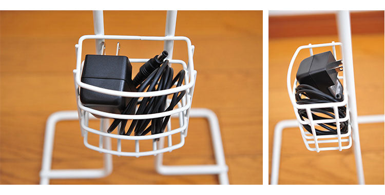 ・充電器を入れるカゴ付きなので、使わないときに収納可能