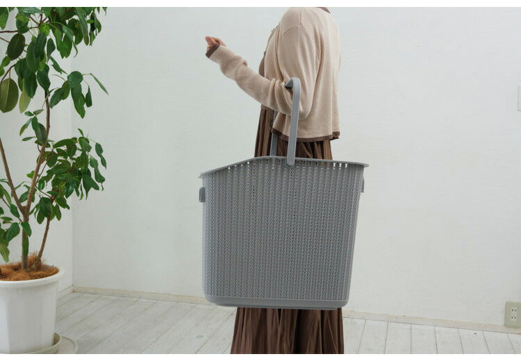 ・ニット風のデザインがおしゃれな、ランドリーバスケットです。