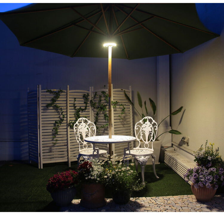 パラソルライト 支柱にはめるだけ 明るさ3段階調整 ガーデンライト パラソル用ライト 工事不要 吊り下げ 電池式 天井灯 アウトドア ガーデン(代引不可)