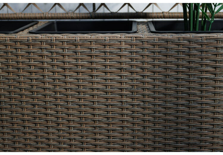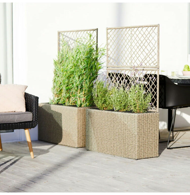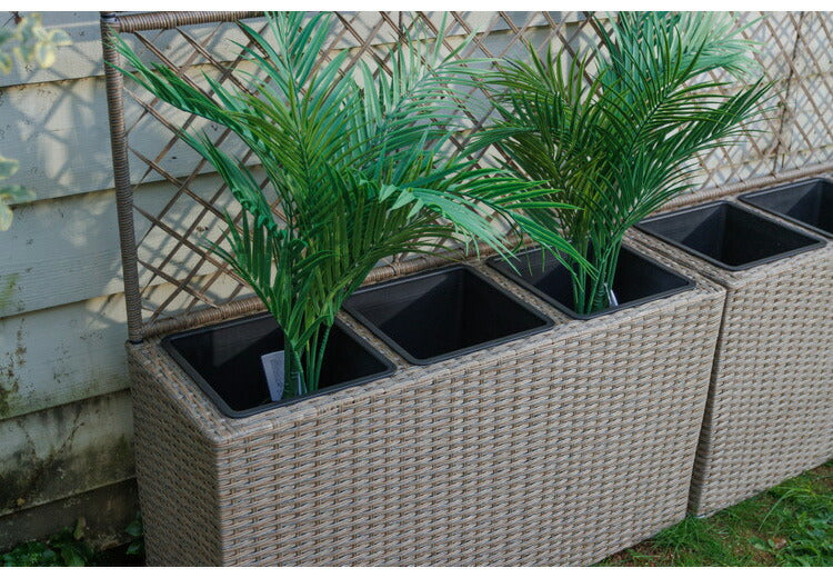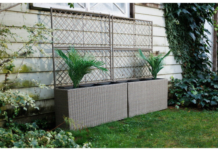 ・目隠しや仕切りに使える、フェンス付きラタン調プランターボックスです。