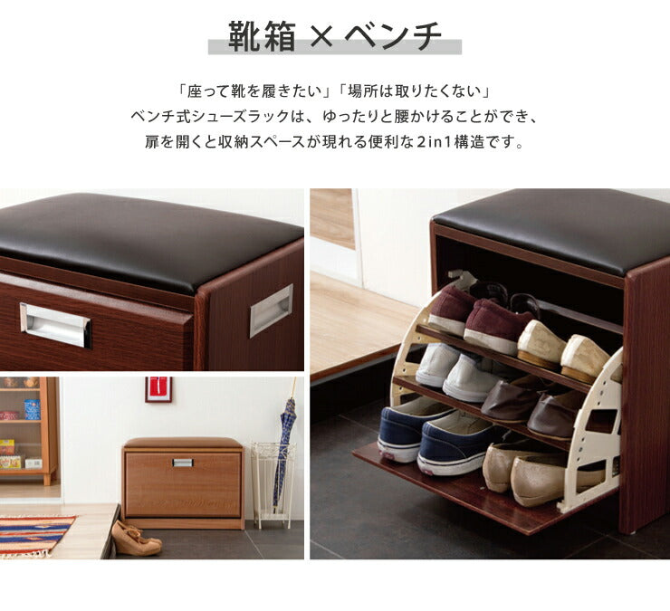 シューズラック ベンチ付き 幅44cmタイプ ベンチ付きシューズラック フラップ式 下駄箱 靴箱 ベンチ 腰掛け イス 玄関 完成品(代引不可)